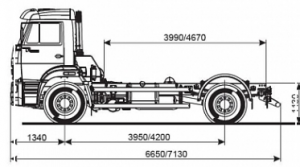 Шасси 6*4, длина рамы 5 970 мм, межосевое растояние мм, грузоподъемность 12 тонн