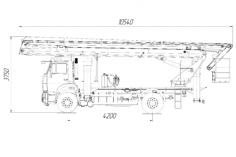Описание комплектации а/м высота подъема 28 м, 3-х коленчатый